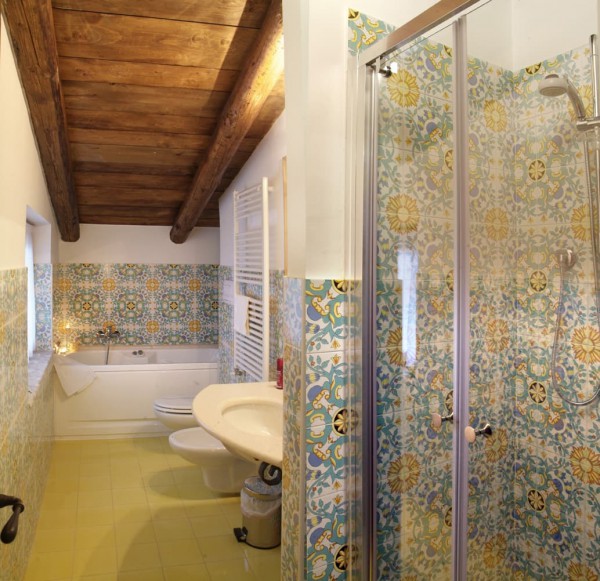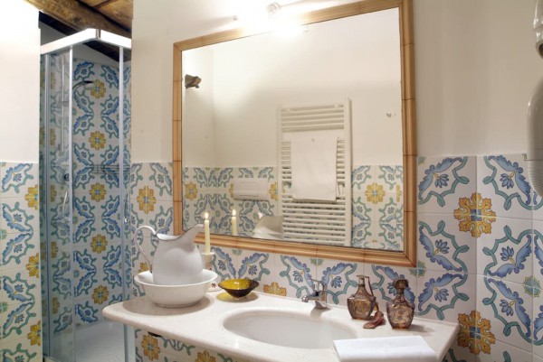 The suggestive bathrooms, decorated with Vietri ceramics,